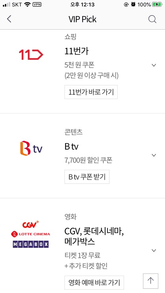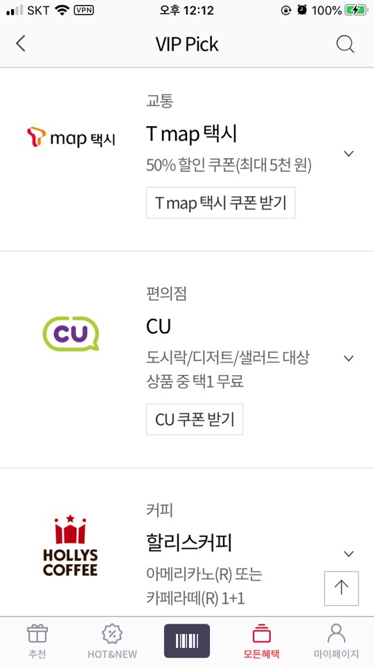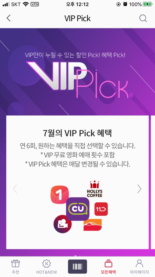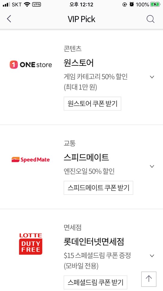 저는 SKT VIP 티맴버십 해택 중 받는게