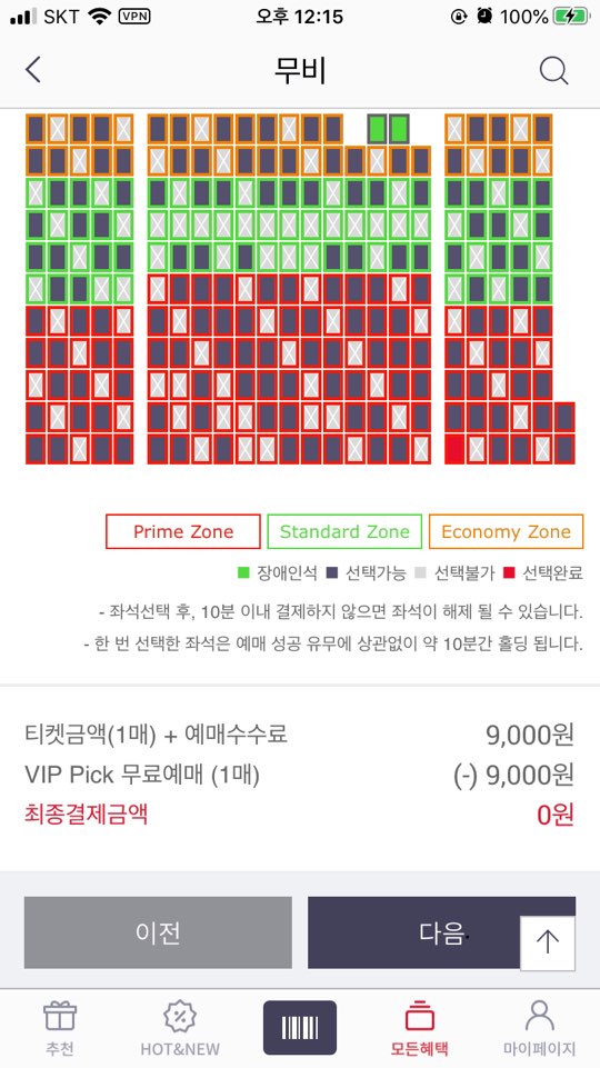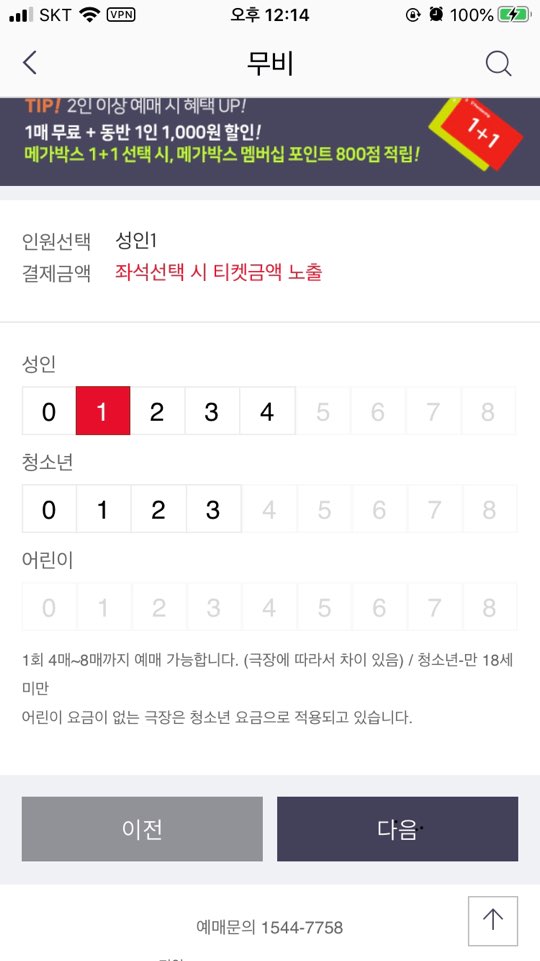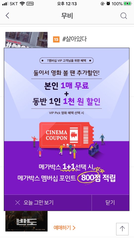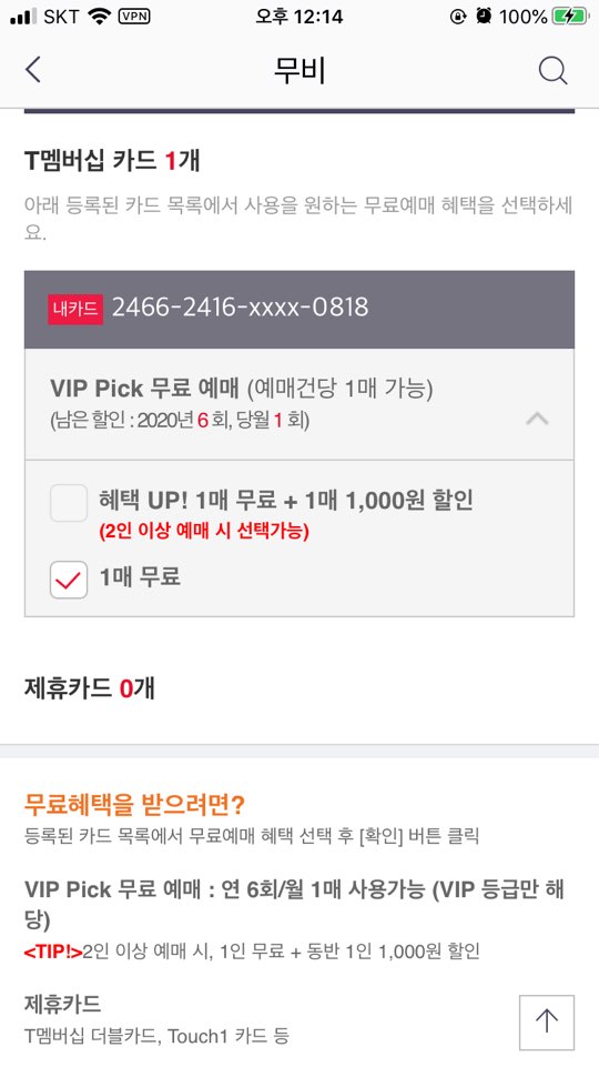 아 그리고 영화예매는 한달에 한번 사용 가능하답니다.