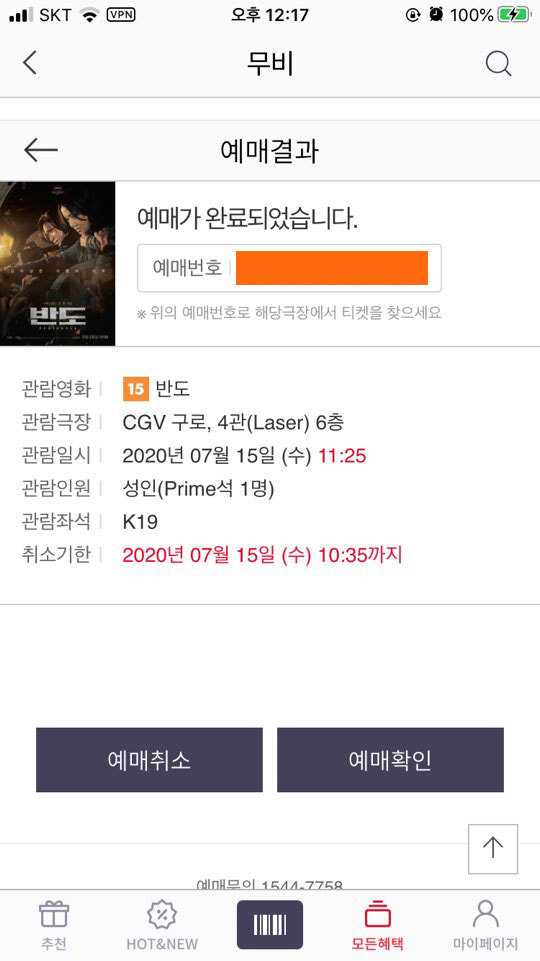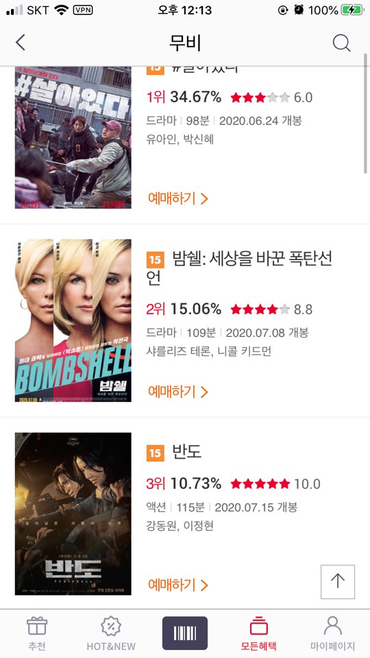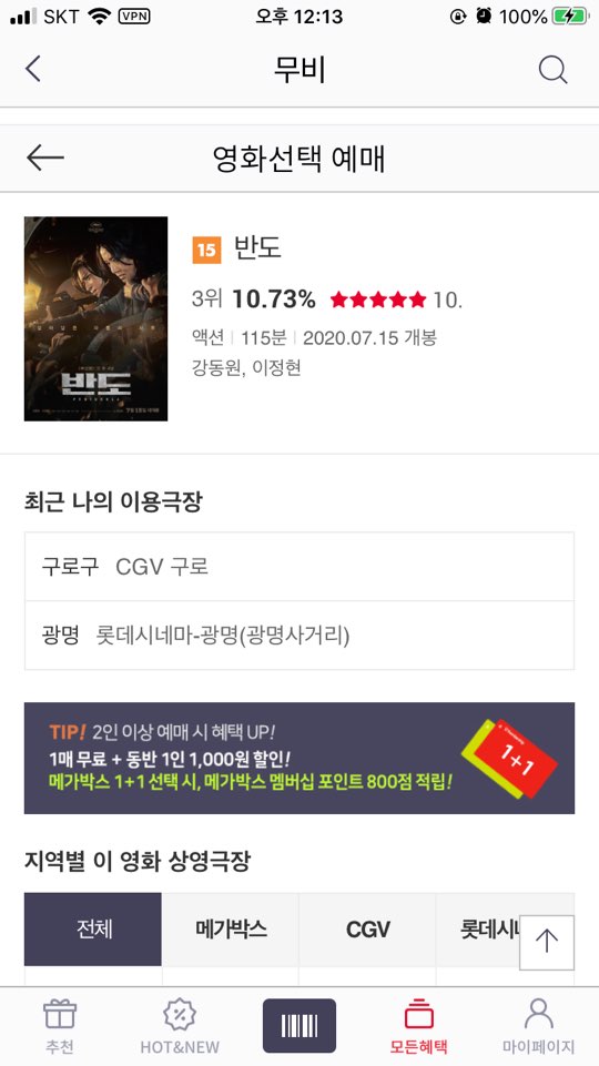저는 반도로 영화예매를 해보겠습니다.